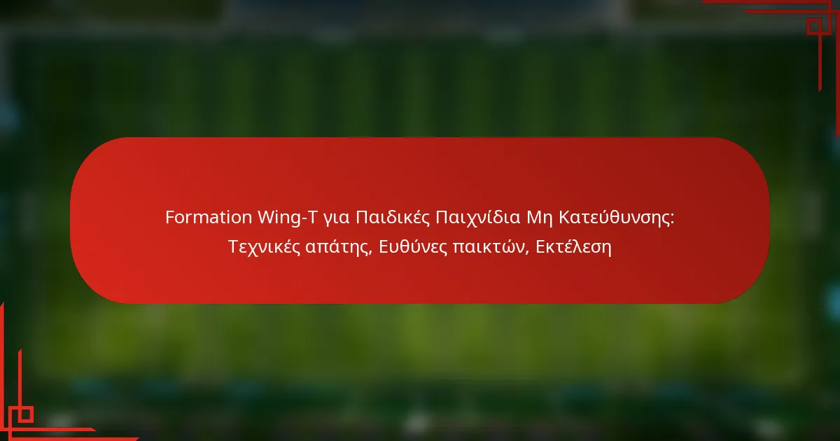 Η διάταξη Wing-T είναι μια στρατηγική επιθετική διάταξη στο νεανικό ποδόσφαιρο που επικεντρώνεται στη παραπλάνηση και την εξαπάτηση για να ξεγελάσει την άμυνα. Δίνοντας έμφαση στην ταχεία κίνηση της μπάλας και το στοιχείο της έκπληξης, επιτρέπει στους νεότερους παίκτες να εκτελούν αποτελεσματικά τις φάσεις που μπορούν να μπερδέψουν τους αντιπάλους και να δημιουργήσουν ευκαιρίες για σκοράρισμα. Οι ευθύνες κάθε παίκτη είναι ζωτικής σημασίας, καθώς η επιτυχία της παραπλάνησης εξαρτάται από την αδιάκοπη συνεργασία μεταξύ του quarterback, των running backs, των wide receivers και της επιθετικής γραμμής.
